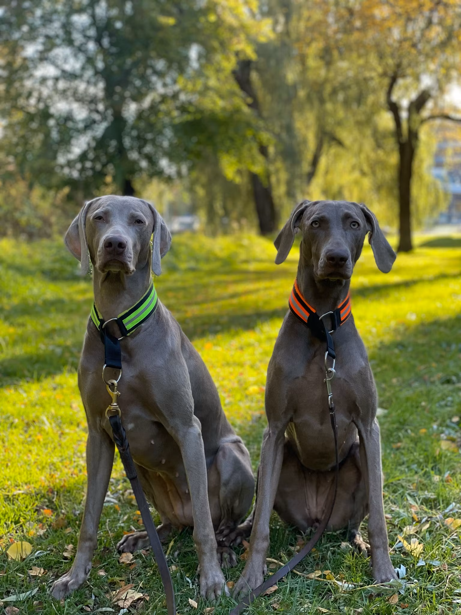 Halsbanden är 5 centimeter breda och försedda med ett reflexband. Halsbanden är fodrade med fleece i samma färg som reflexbandet . Måtten i storlekstabellen avser halsbandets omkrets i centimeter när det är åtdraget till halsbandets omkrets i centimeter när det är utspänt.