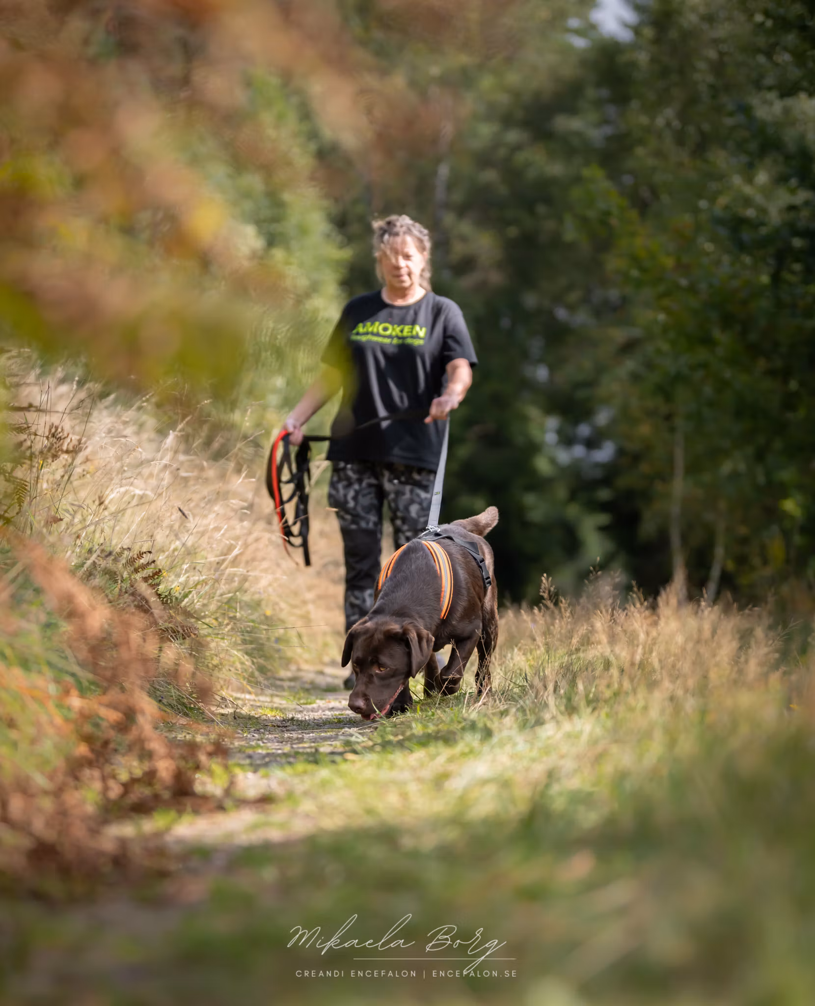 Spårlina 10 meter i dubbelsydd polypropylenrem. Linan är 25 mm bred och försedd med en BGB-hake som är 62mm lång.